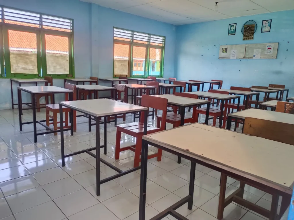 Meja dan Kursi Siswa Disediakan meja dan kursi untuk setiap siswa yang didesain ergonomis agar mendukung kenyamanan selama kegiatan belajar.